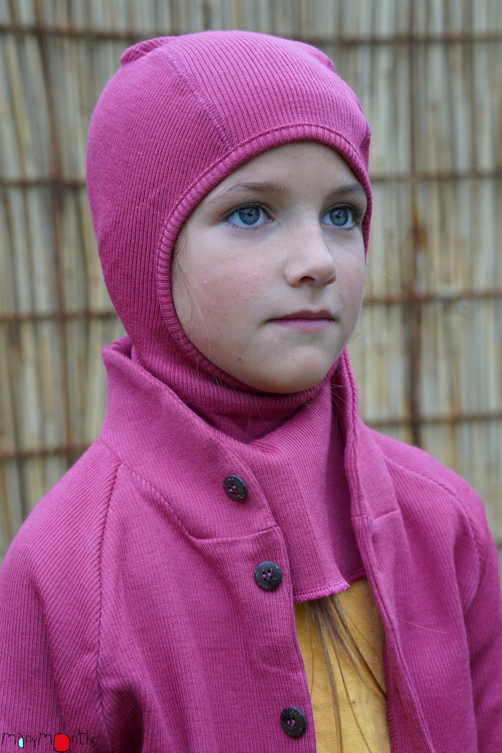 - La coupe est bien pensée pour épouser parfaitement la tête, ainsi la cagoule reste bien en place, le tricot à double sens pour suivre la croissance.