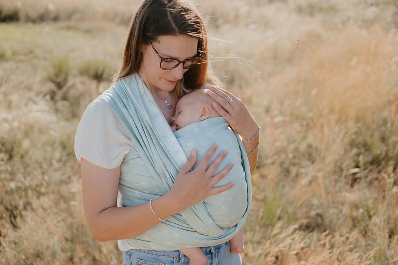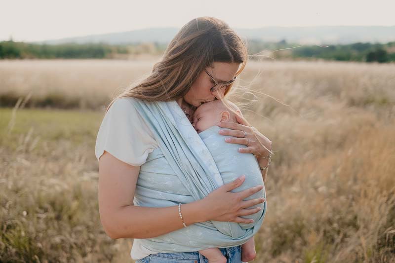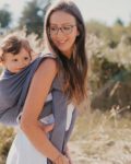 Avec un grammage de 235g/m2, cette écharpe convient pour un portage ventral, sur la hanche ou sur le dos. Elle peut être lavée en machine à 30C (je déconseille l’utilisation d’assouplissant et de sèche- linge). Je vous recommande de laver l’écharpe avant la première utilisation.