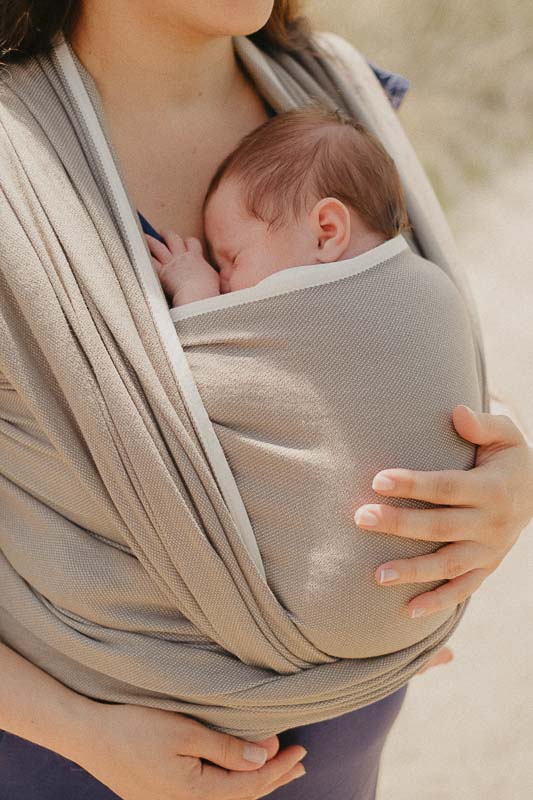 Avec un grammage de 235g/m2, cette écharpe convient pour un portage ventral, sur la hanche ou sur le dos. Elle peut être lavée en machine à 30C (je déconseille l’utilisation d’assouplissant et de sèche- linge). Je vous recommande de laver l’écharpe avant la première utilisation.