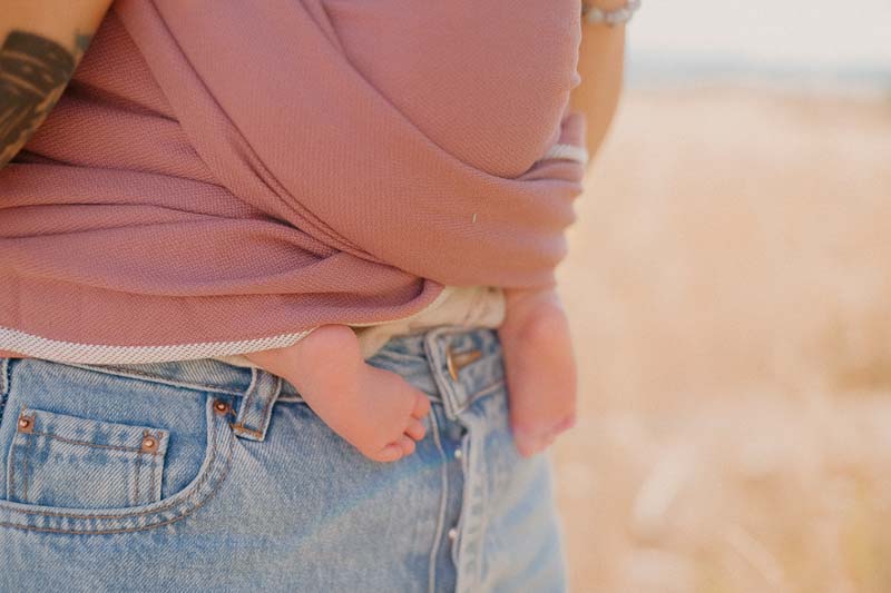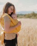 Avec un grammage de 235g/m2, cette écharpe convient pour un portage ventral, sur la hanche ou sur le dos. Elle peut être lavée en machine à 30C (je déconseille l’utilisation d’assouplissant et de sèche- linge). Je vous recommande de laver l’écharpe avant la première utilisation.