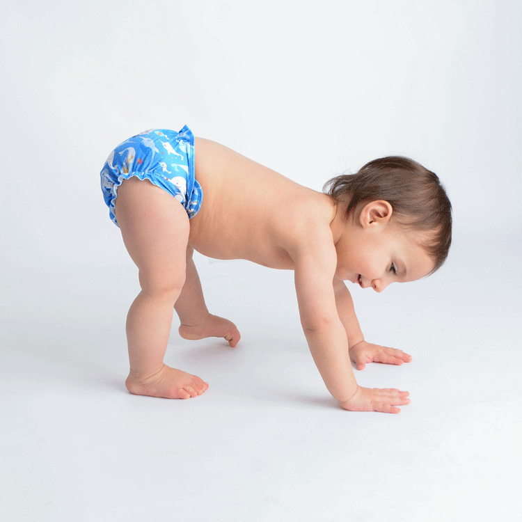 Contrairement aux maillots couches jetables, le maillot-couche taille unique lavable Applecheeks ne laisse pas passer les selles dans les piscines. Les selles restent DANS la couche et HORS de l’eau !