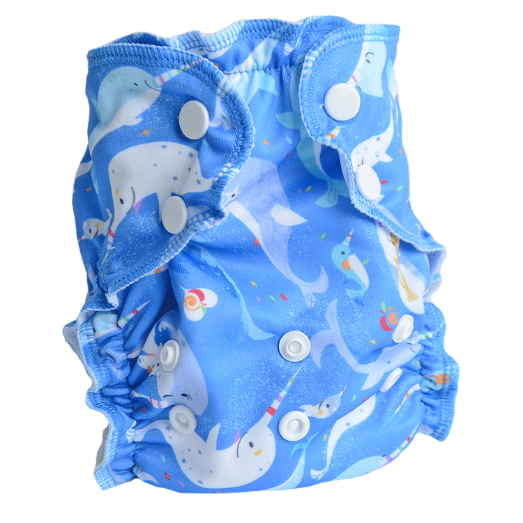 Une seule taille qui convient à la plupart des bébés de la naissance à la continence, grâce à un système évolutif : des rangées de pressions sur le devant du maillot permettent de moduler la taille de 2.8 kg à 16 kg. Un seul maillot-couche qui va durer plusieurs années !