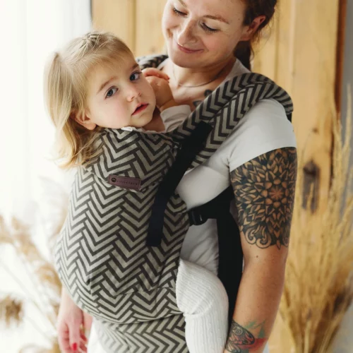 Le MySol® est fabriqué à partir de deux couches de tissu d’écharpe de portage en sergé croisé de haute qualité, qui s’adaptent comme une seconde peau autour du porteur et assurent ainsi un soutien optimal.