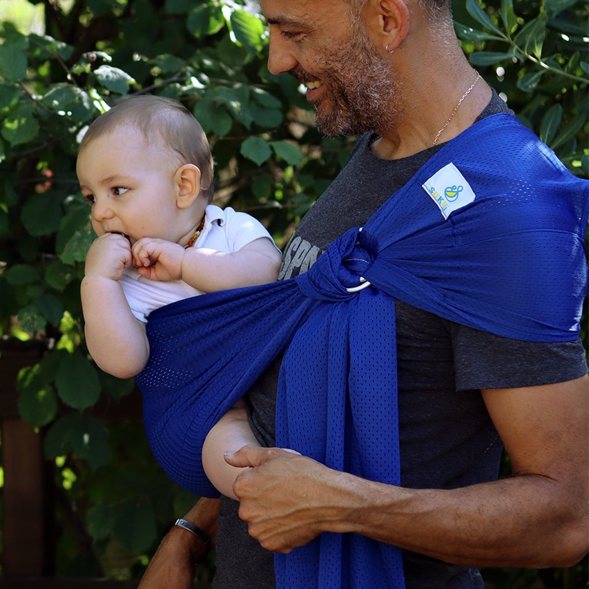 Le Sukkiri est un sling réalisé avec une maille douce et transpirante et des anneaux en aluminium. Facile d’installation et avec un séchage ultra rapide, le Sukkiri est LE moyen de portage pour l’été!